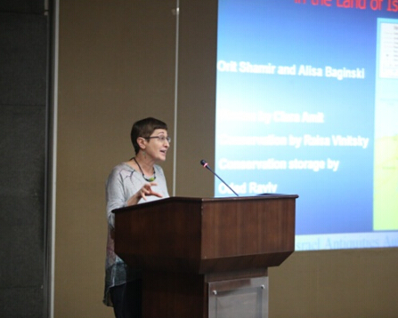 以色列国家文物局馆长、博物馆展览部门主管Orit Shamir 对中古世纪以色列大陆上的发现的丝绸纺织品进行了介绍。